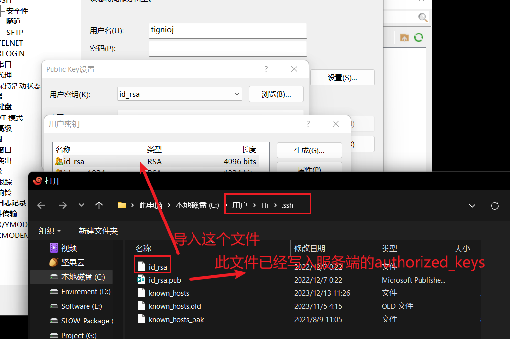 注意要导入客户端(非linux服务器)的.ssh/id_rsa 文件